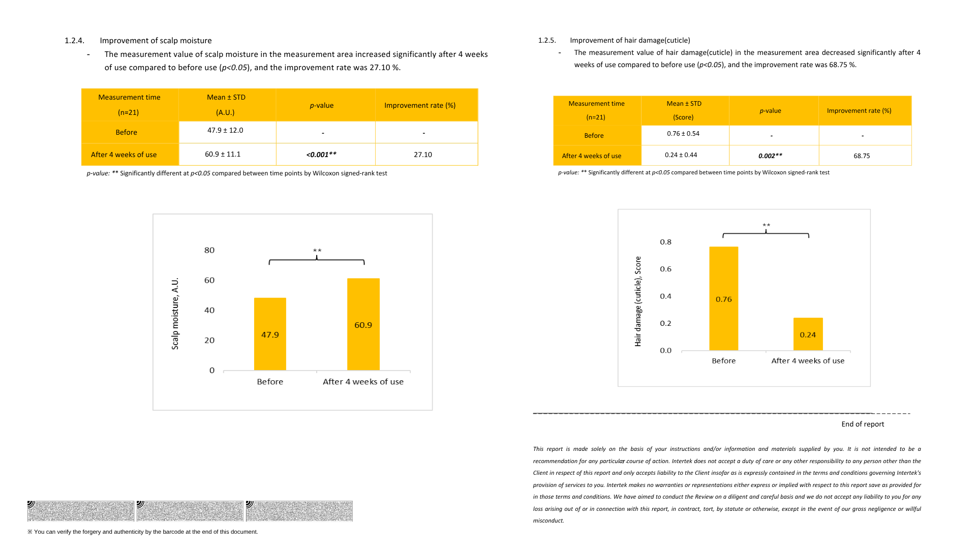 -68.75% improvement in hair cuticle condition after 4 weeks